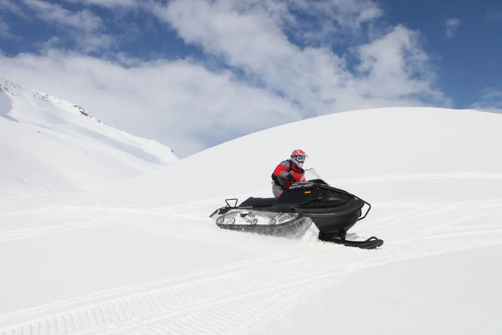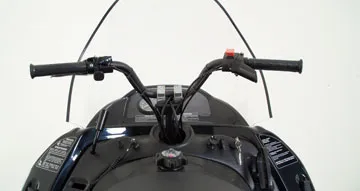 Из особенностей модели стоит отметить высокий руль, позволяющий активно маневрировать в положении стоя. У снегохода двухуровневое сидение и обогрев рукояток руля с курком газа. Высокое ветровое стекло с мощной фарой головного света.